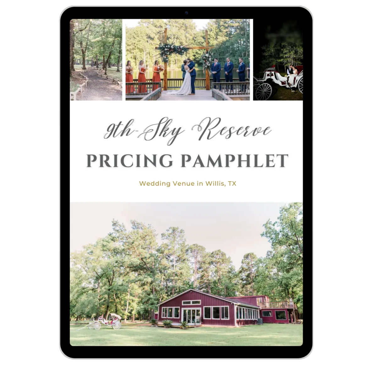 This pricing pamphlet will give you a taste of The 9th Sky Reserve Wedding Venue wedding experience while in the comfort of your own home! Packed with pricing, packages, amenities, and much more!