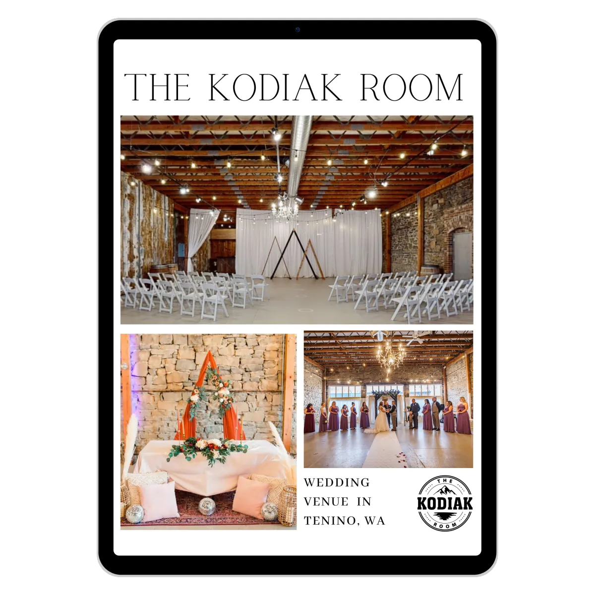This pricing pamphlet will give you a taste of The Kodiak Room Wedding Venue wedding experience while in the comfort of your own home! Packed with pricing, packages, amenities, and much more!